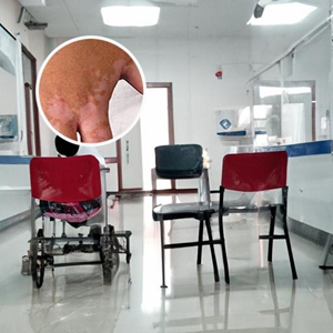 皮膚出現(xiàn)白斑,表面光滑,搓揉有輕微發(fā)紅 |